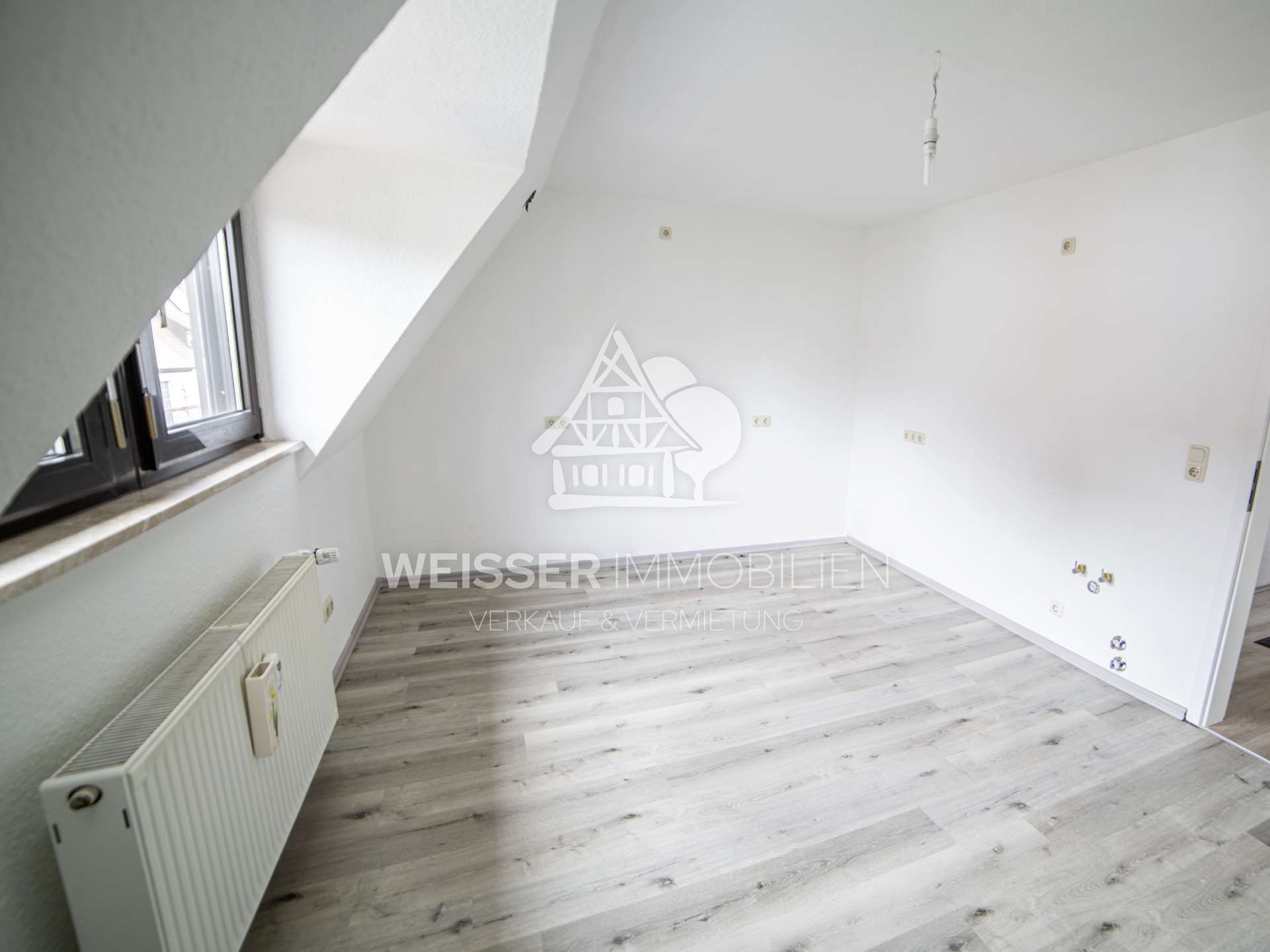 Die Wohnung wurde zwischen 2023 und 2025 vollständig renoviert und präsentiert sich nun im Erstbezug. Im Erdgeschoss befindet sich der separate Eingang, der sowohl in den Kellerraum als auch in das Dachgeschoss (1. Obergeschoss) führt. Im Keller steht Ihnen ein großer, trockener Stauraum zur Verfügung, während sich das eigentliche Wohnen im 1. Obergeschoss (DG) abspielt – diese Struktur verleiht der Wohnung ein Haus-Feeling.